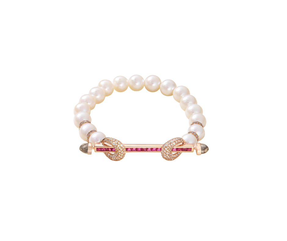 18K Yellow Gold Bracelet with 1.33ct Ruby, 1.31ct Diamond & 54.19ct Pearl Chakra, 6.48g – Unique, luxurious design