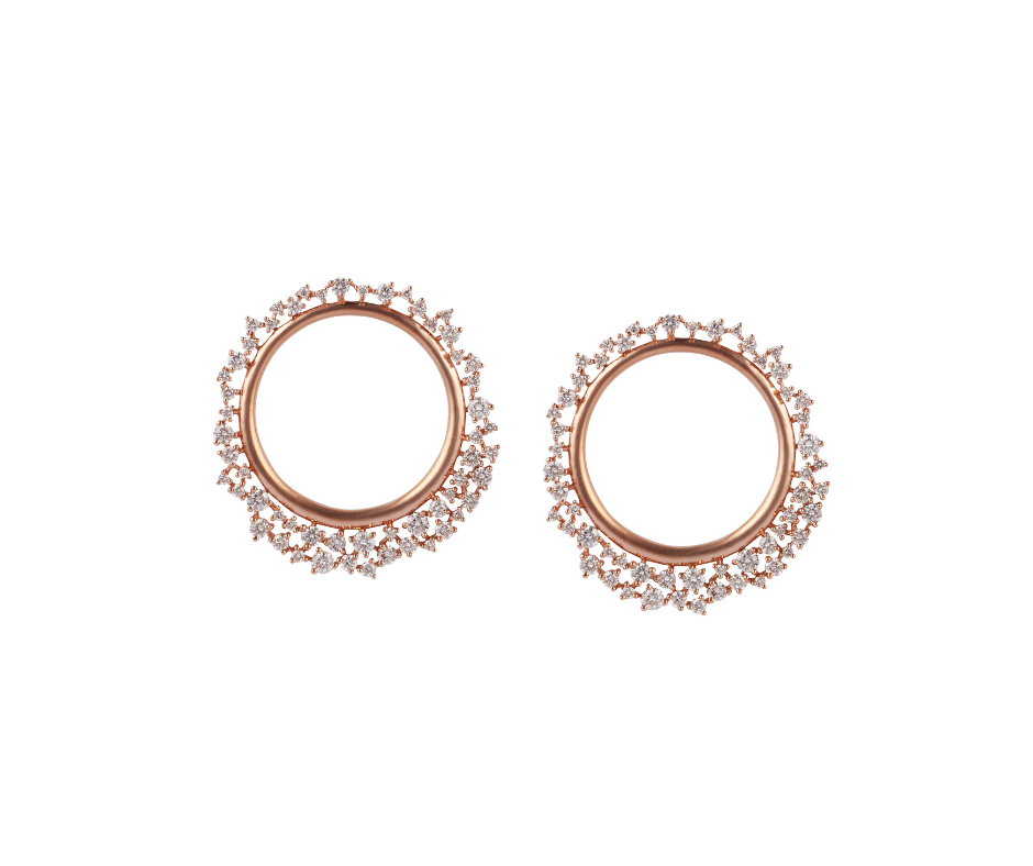 18K Rose Gold Earrings with 2.65ct Diamonds, 12.12g – Stunning scatter design by Ananya, elegant and luxurious