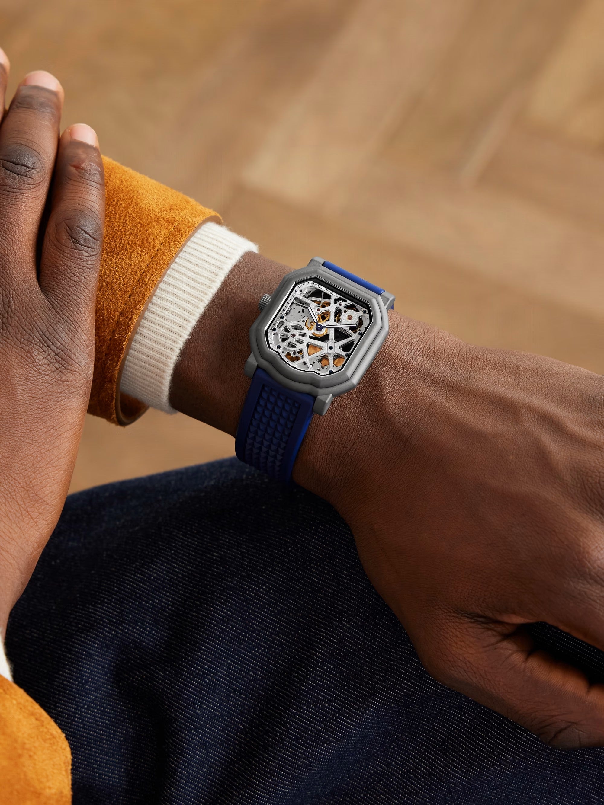 Gerald Charles Maestro8.0 GC8.0-TX-TN-01,Lug Width 22mm,Bold 44 mm skeleton watch, titanium case, Swiss automatic movement, sporty luxury design.