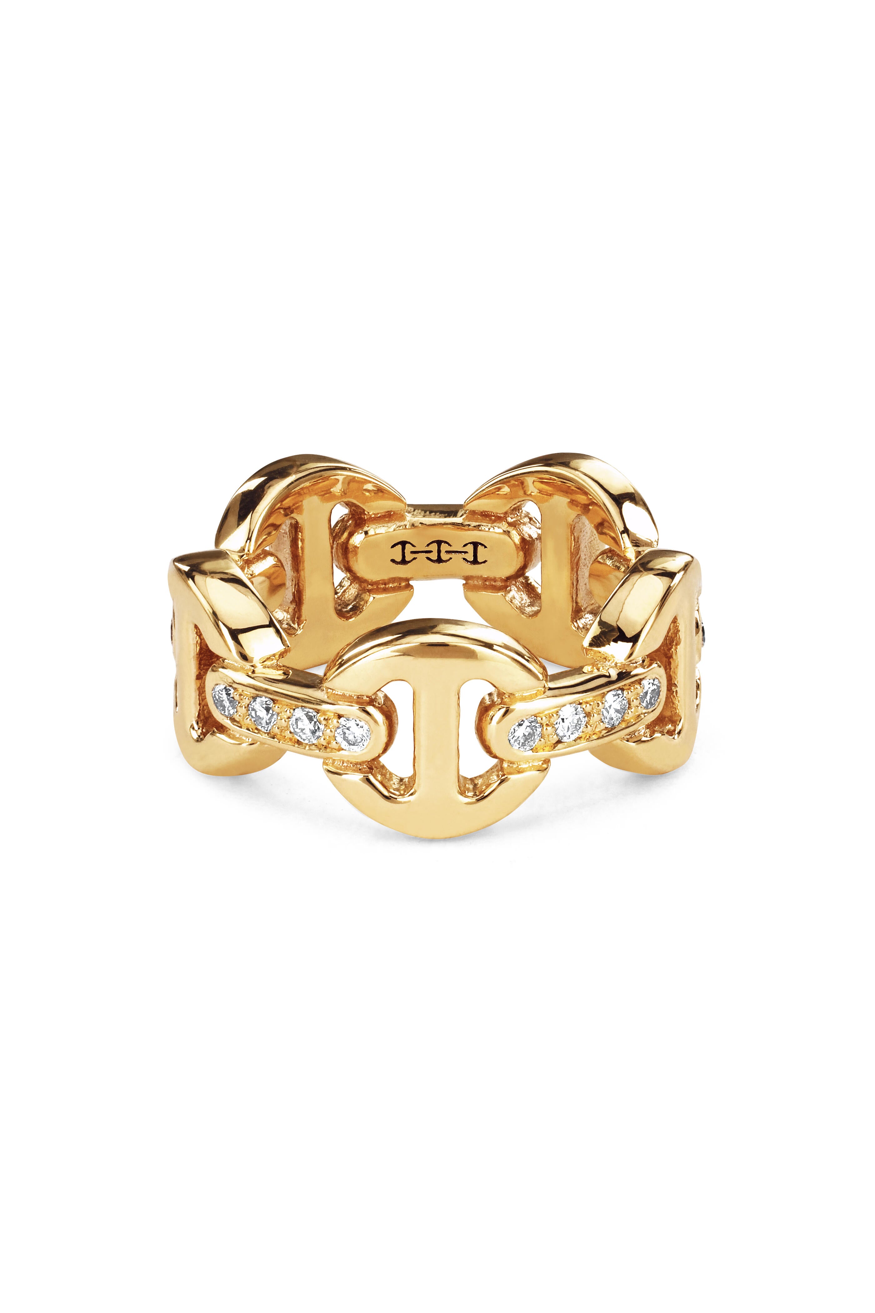18K Yellow Gold Ring, Size 7.5, featuring 0.08ct VS1-2/F-G diamonds in a 3-bridge design, weighing 3.90g.