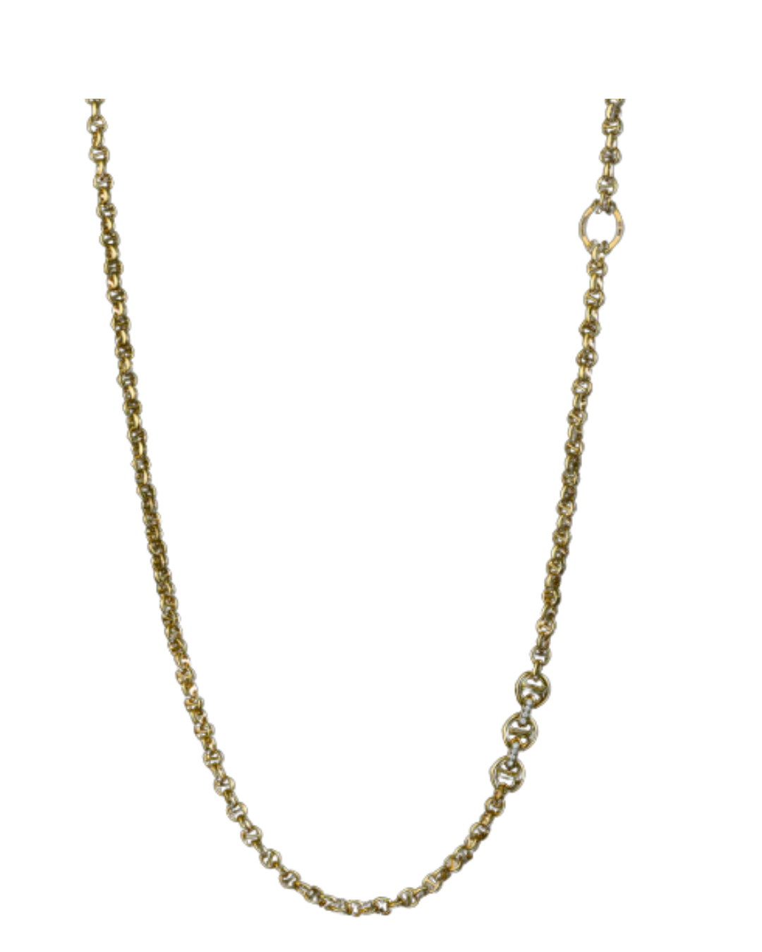 18K Yellow Gold 42" Open Link Necklace with 0.22ct VS1–2/F–G Diamonds, 180.70g – Bold, luxurious statement piece