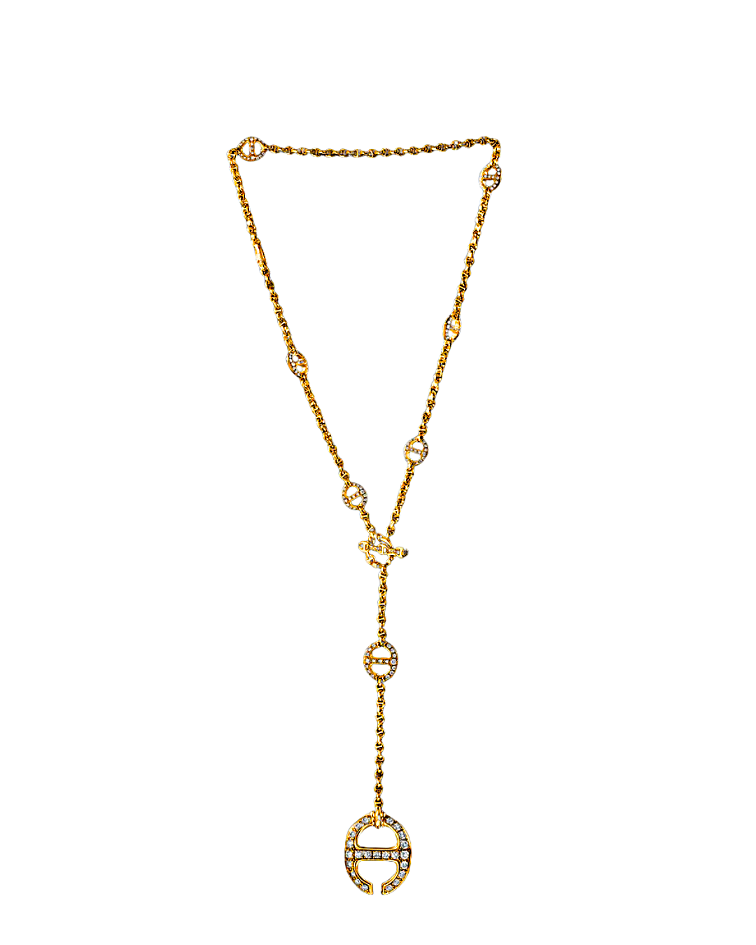 18K Yellow Gold grand lariat necklace, 17”, 60.50g, featuring diamond accents for a bold, luxurious statement look.