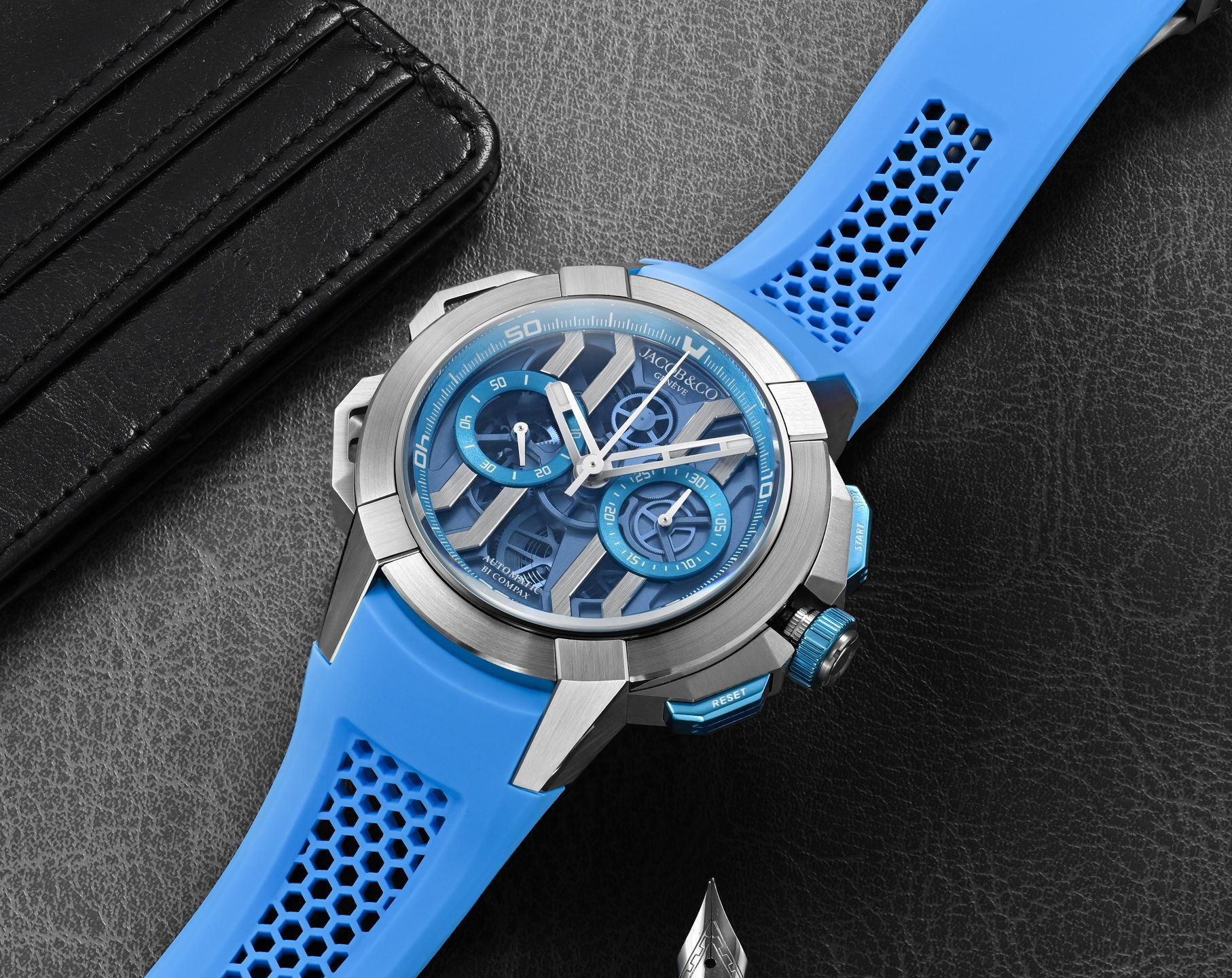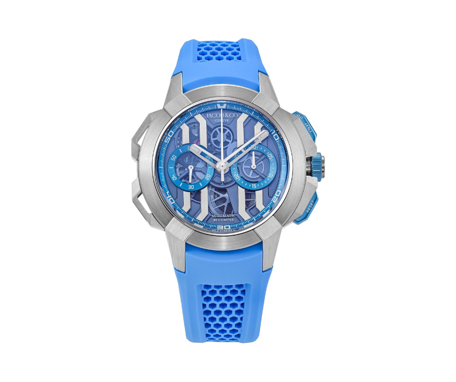 Jacob & Co EC430.20.AA.AA.ABRUA 20mm Epic X Chrono with titanium case, ceramic accents, automatic JCAA05 movement & 48hr power reserve.