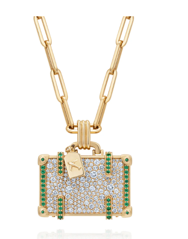 14K Yellow Gold Necklace with 2.79c White Diamonds and 0.94ct Emeralds on a refined 50cm chain.