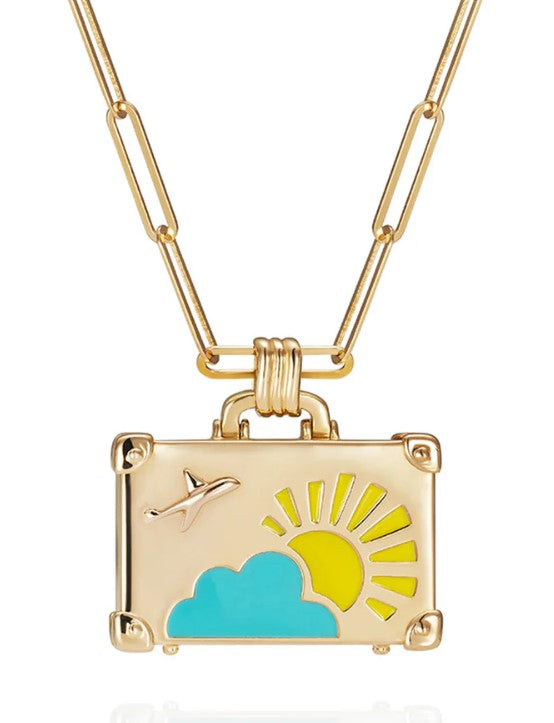 14K Yellow Gold Necklace, 44cm, featuring vibrant enamel accents for a colorful and elegant statement piece.