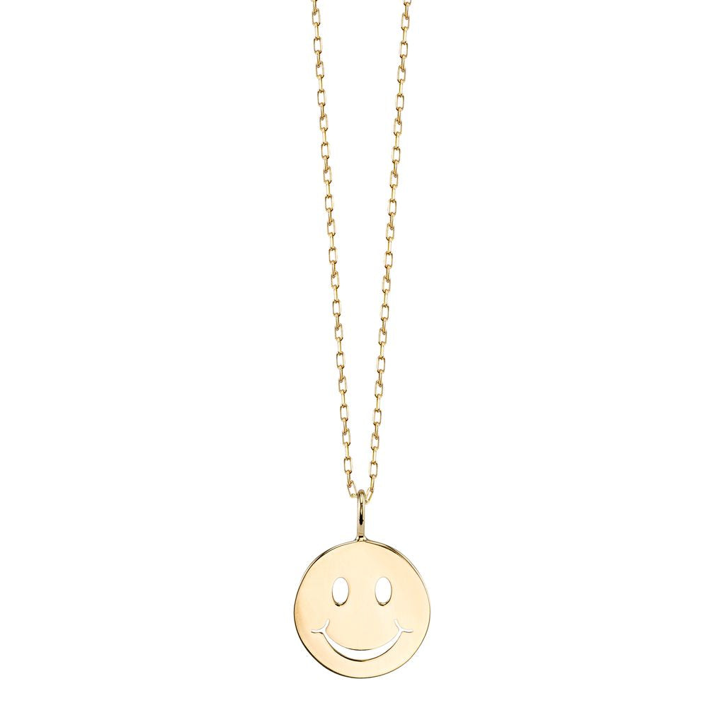 14K Yellow Gold Happy Face Charm Pendant Necklace