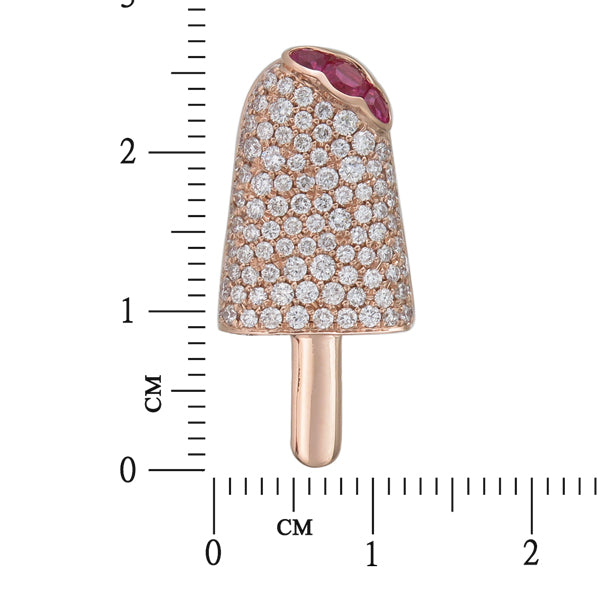 18K Rose Gold Pendant with 120 VS1/E–F diamonds (1.16ct) and 3 rubies (0.38ct), 3.88g—vivid, elegant sparkle.