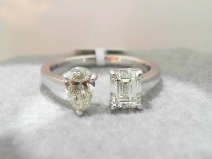 18K White Gold Ring featuring 0.51CT VS2/K Pear Cut diamonds and 0.90CT SI1/K Emerald Cut diamonds. Italian crafted, Size 6.5.**