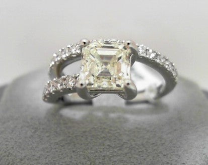 18K White Gold Ring featuring 0.57CT VVS1/F diamonds and 1.52CT VVS1/H princess-cut diamonds. Elegant, luxurious design.**