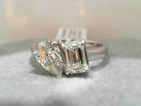 18K White Gold Ring featuring a 1.00CT VVS2/J emerald-cut diamond and 1.01CT SI2/I pavé-set diamonds. Size 6.5.