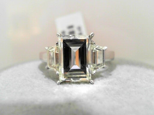 18K White Gold Ring featuring a 3.32ct Emerald-Cut Diamond (VVS2/L) accented by 1.21ct of diamonds. A bold and radiant luxury statement.**