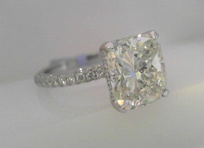18K White Gold Ring featuring a 5.01CT cushion-cut diamond (J/SI2) accented with 1.15CT VS1–VS2/E–F diamonds. Italian-crafted, luxurious design.**