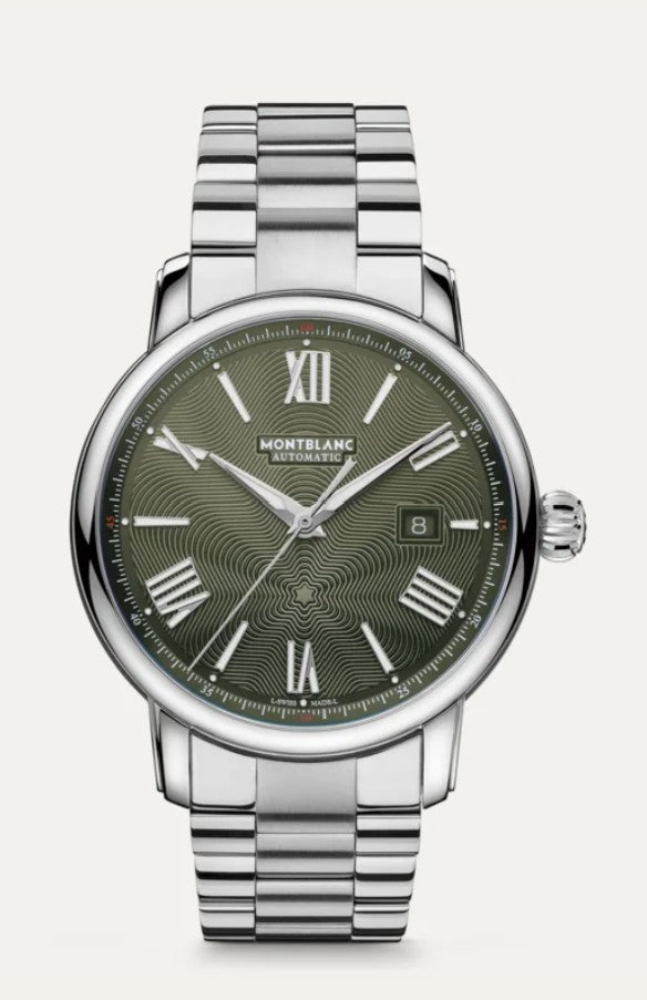 Montblanc 132949: 21mm Lug width Limited 43mm green dial, MB 24.17 caliber, 38h power reserve, 50m water resistance, elegant and exclusive.