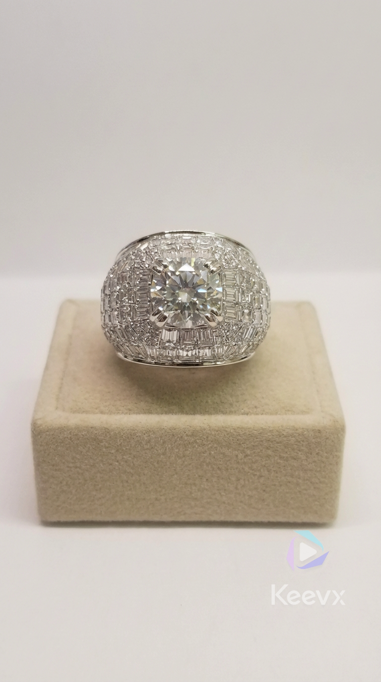 Luxurious Platinum Statement Ring Set with 15.75ct of E/F–VS1 diamonds, expertly crafted in Italy for exceptional brilliance.