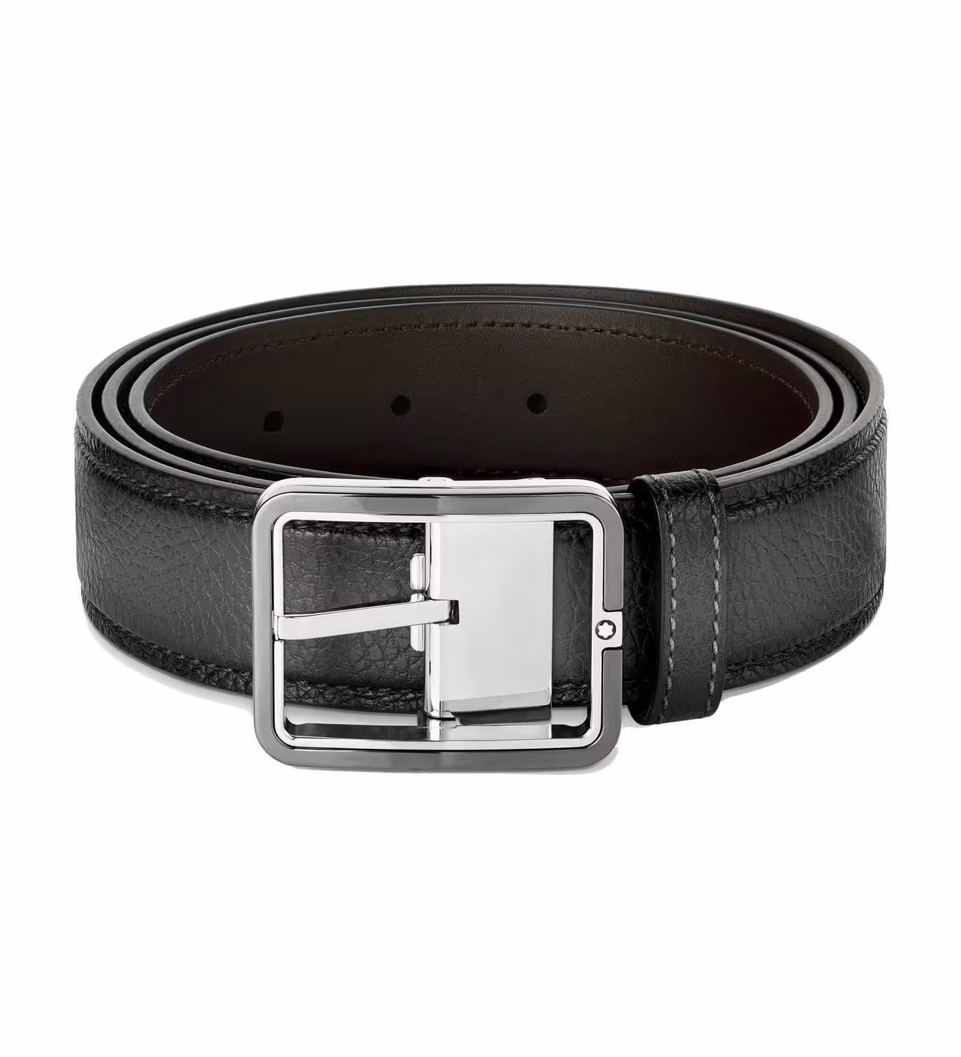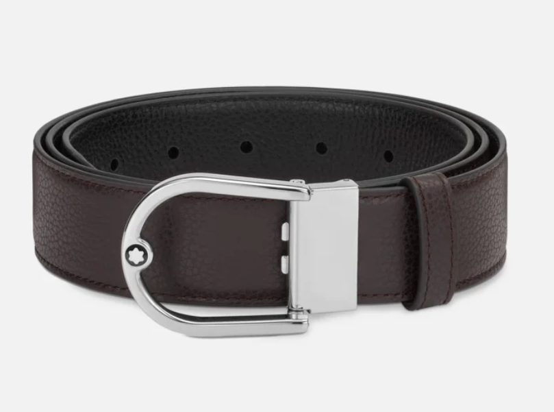 Montblanc 198632 Horseshoe Buckle 35mm Reversible Leather Belt Grainy Ebony/Black