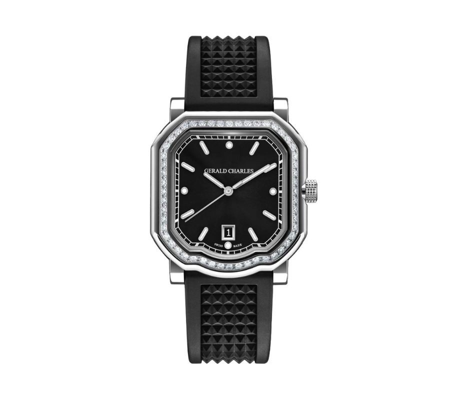 Gerald Charles Maestro GC2.0-A-DIA-00, Lug Width:20mm is a sleek 39 mm stainless steel watch with 52 diamond set bezel, black sunburst dial, and automatic movement.