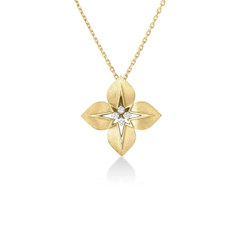 18K Y NK PRN STAR 27MM DI-0.17CT TC