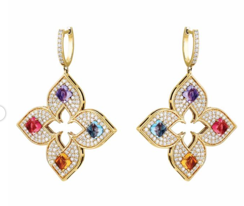18K Rose Gold Multi Color Diamond Hoops Earrings
