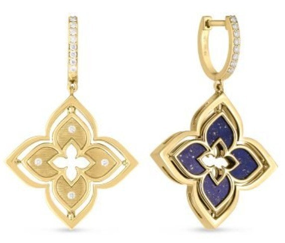 18K Yellow Gold 0.19ctw Diamond and 5.80ctw Blue Lapis Earring Jacket