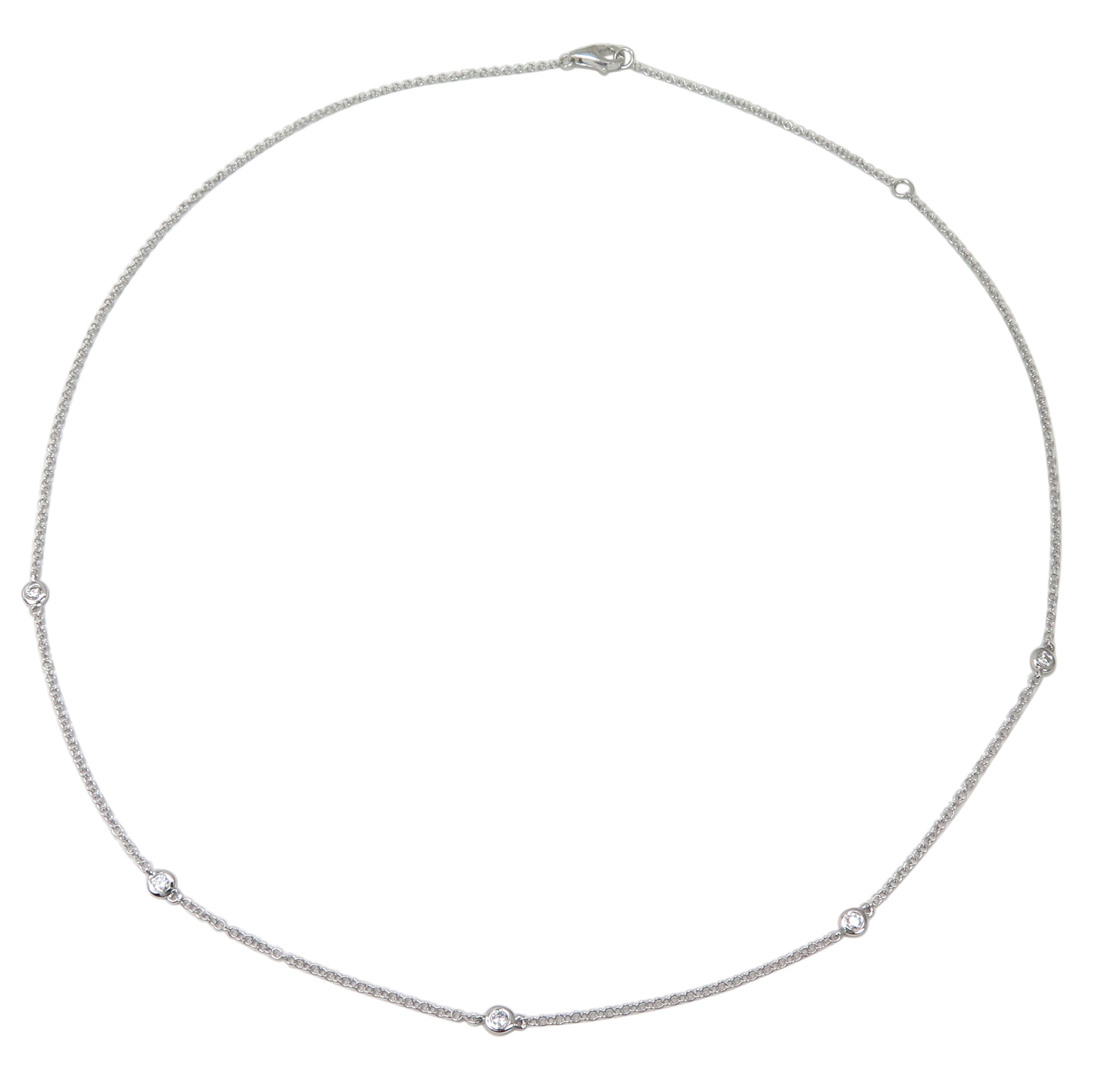 18K White Gold necklace with 5 round VS1/F diamonds totaling 0.179ct, 3.42g — timeless sparkle in a sleek design.