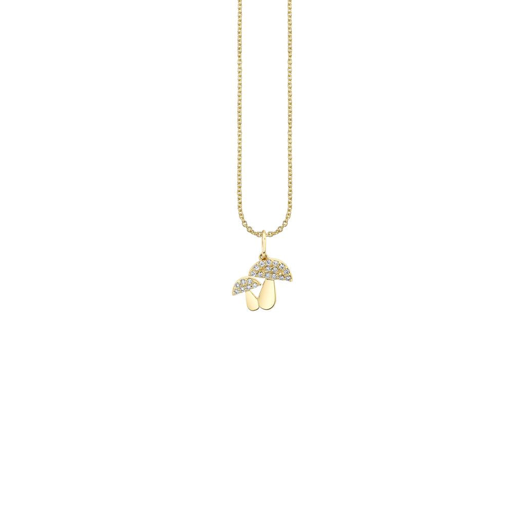 14K Yellow Gold mushroom pendant adorned with 0.242ct of sparkling diamonds, blending whimsy and elegance in a unique design.