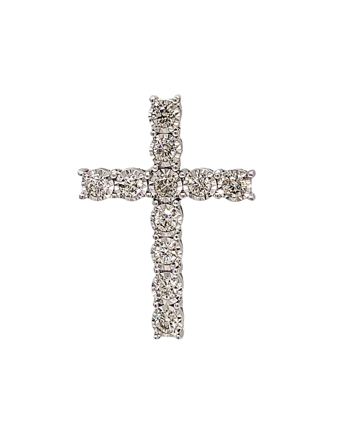 18K White Gold Cross Pendant with 11 round diamonds totaling 7.25ct, VS1-2/E-F clarity, crafted in Italy for exceptional brilliance.