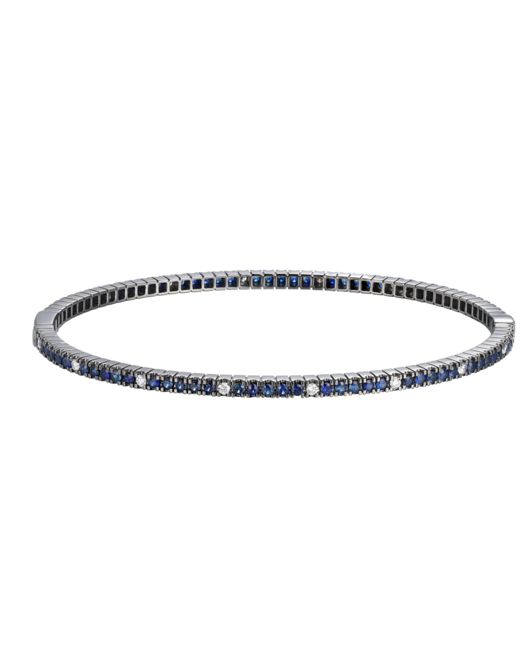 18K White Gold Bracelet with 78 Blue Shapphire diamonds 1.80ct & 16 diamonds 0.49ct VS1-2/E-F, 10.12g—Italian luxury with stunning sparkle.