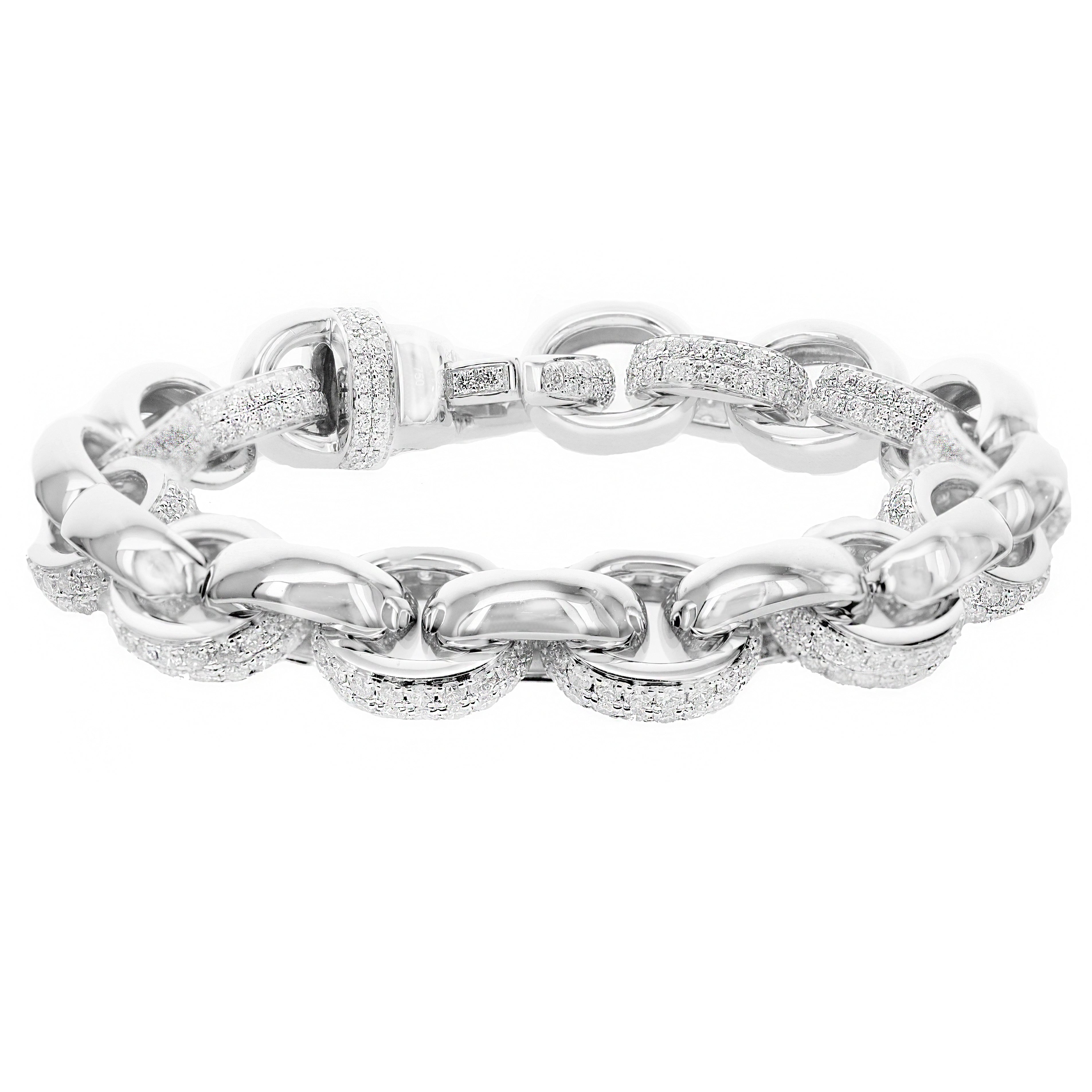 18K White Gold 7" Inc bracelet, 7.60ct EF VS1/2 diamonds, 45.31g — timeless elegance in white gold.