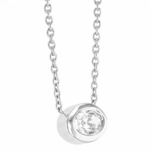 Roberto Coin 18K White Gold Oval Diamond Bezel Set Solitaire Necklace