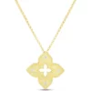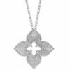 18k White Gold Tapered Baguette & Round Diamond Multi Flower Pendant Necklace