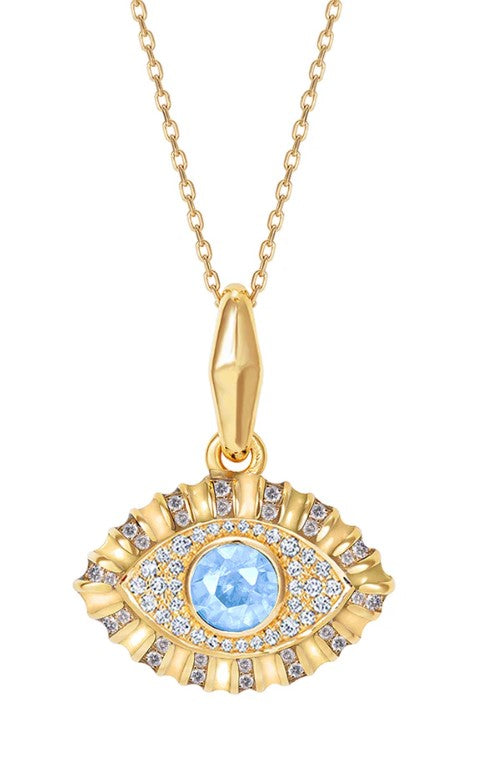 14K Yellow Gold Necklace, 42cm, featuring blue topaz and White diamond 0.2ct diamonds for a sparkling, elegant design.
