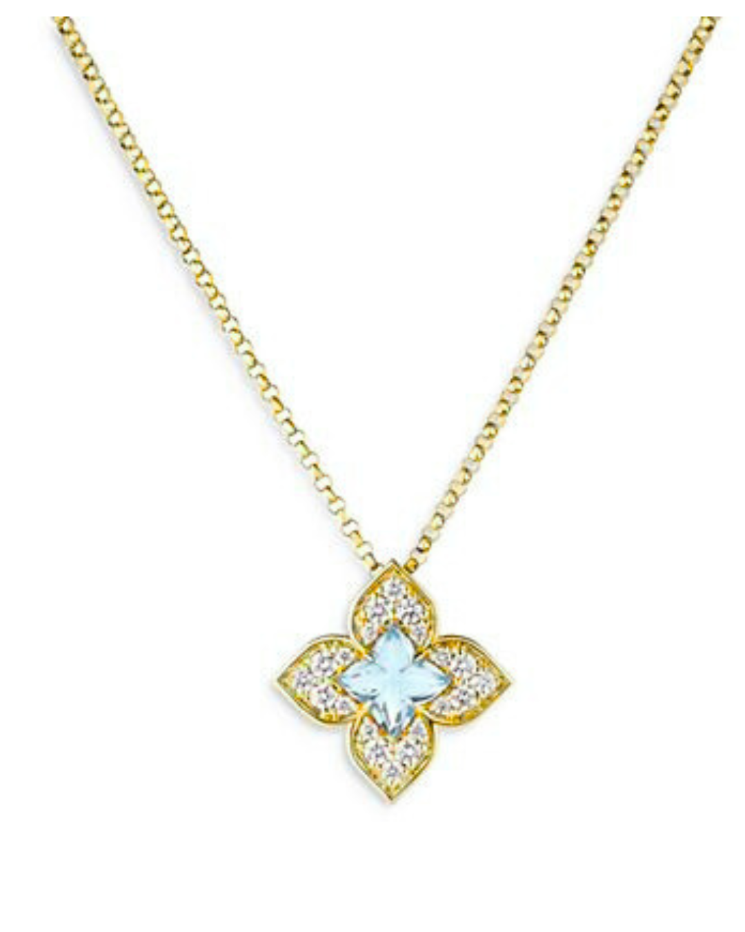 18K Yellow Gold Venetian Princess Necklace featuring a 0.75ct blue topaz and 0.17ct diamonds. Elegant and timeless with a royal touch.